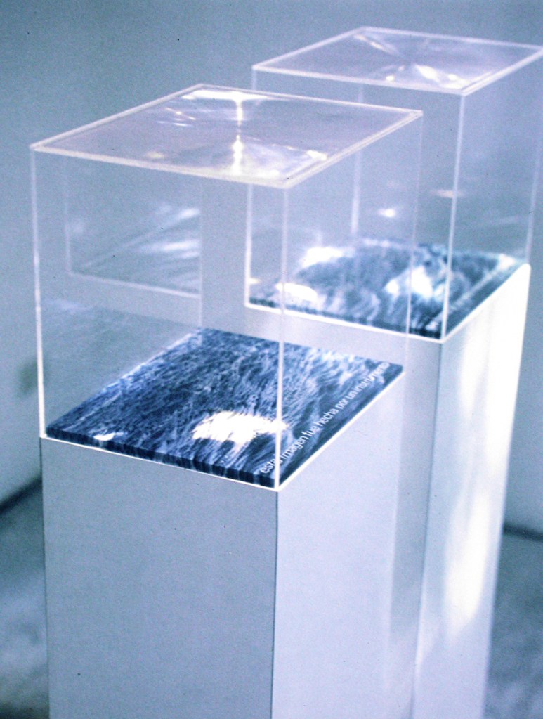 Selección de imágenes, instalaciones fotográficas y espaciales realizadas al inicio de mi carrera y en los últimos años de la licenciatura en Bellas Artes, en Universidad ARCIS. Obras que se remontan a paisajes naturales y construidos. Obras: Límite entre mar y cielo (1998); Juntura de vasos plásticos (2000); Horizonte vertical (1999); Límite entre piel y ropa (1998); Dos de media docena (2001); Salares (2000); Blanco sobre blanco (2003); Pasto complementario (2003), entre otras. Expuestas en Galería Animal, Sala el Farol, Galería Balmaceda Arte Joven, Museo Tajamares, Galería Muro Sur, entre otros. Algunas premiadas en los concursos Arte Joven Universidad de Valparaíso y Arte Banco Santander/Canal 13. La mayoría son registros análogos en película color.